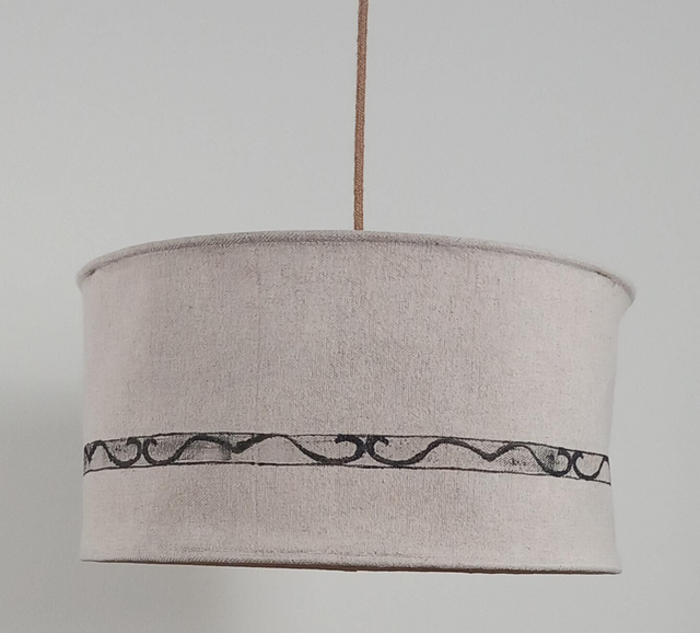 Abat-jour pour suspension en chanvre peint à la main- Plafonnier diamètre 45 cm