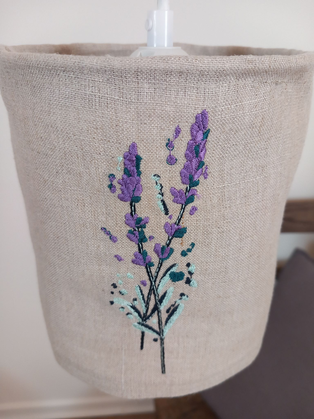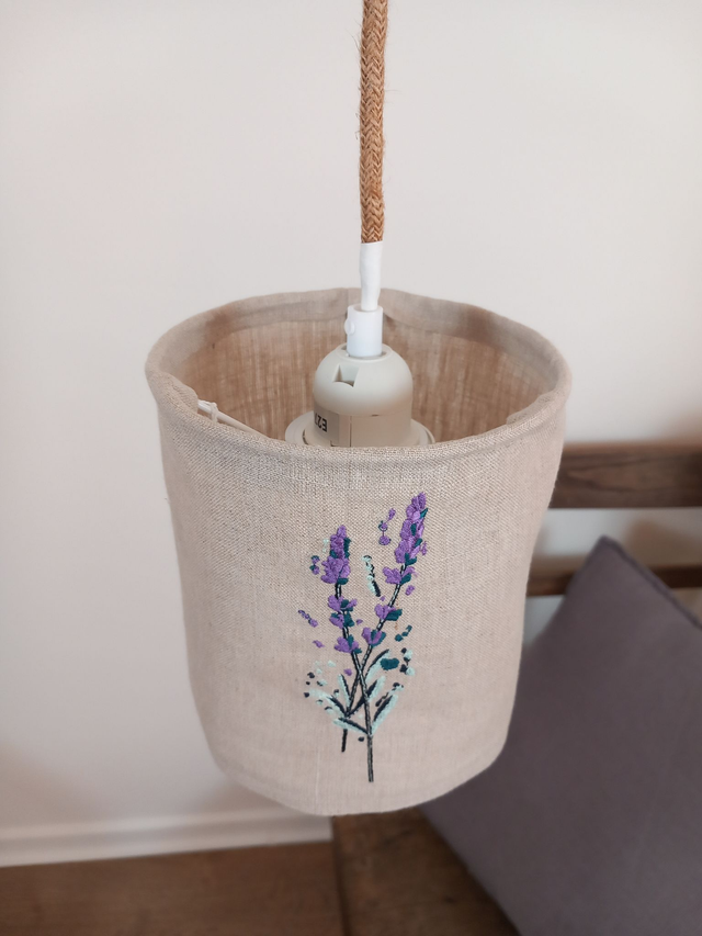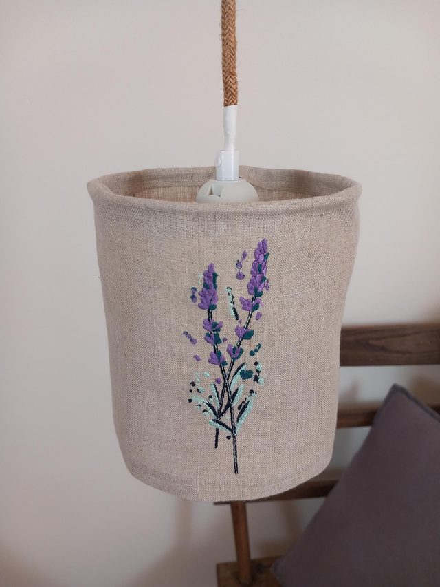 Abat-jour suspension en lin brodé Lavande ,diamètre 15 cm.