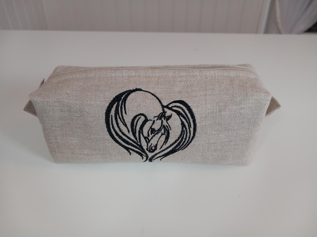 Trousse de maquillage / stylos en lin brodé personnalisable avec prénom sur commande