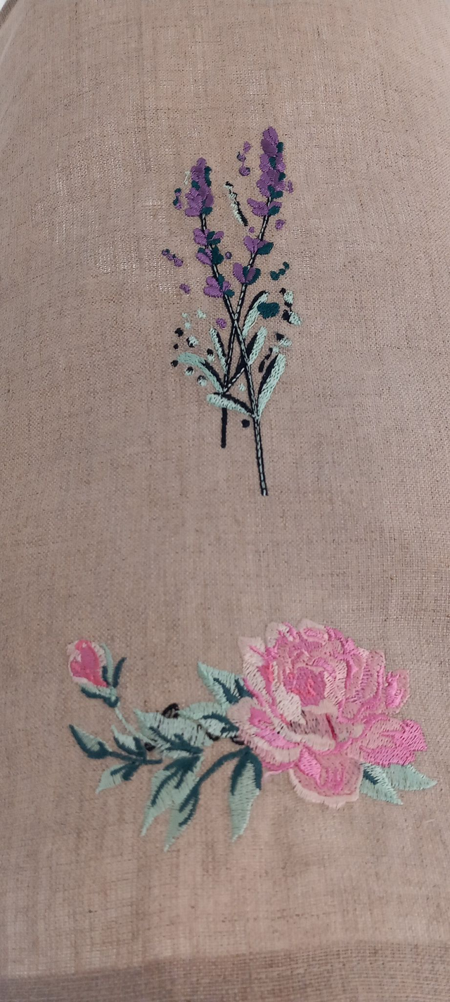 Abat-jour plafonnier en lin naturel brodé lavande et rose- Diamètre 25 cm