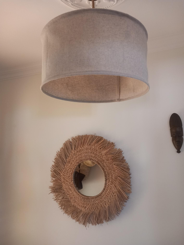 Cet abat-jour pour suspension, rond tambour en chanvre naturel uni, est fabriqué à la main dans mon atelier Lin-en-Lumière près d’Uzès. Disponible en 2 diamètres (35 ou 55 cm), il apporte authenticité et élégance à votre intérieur.